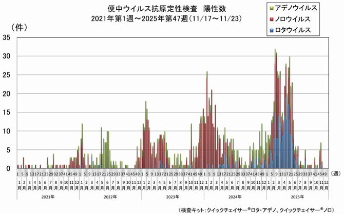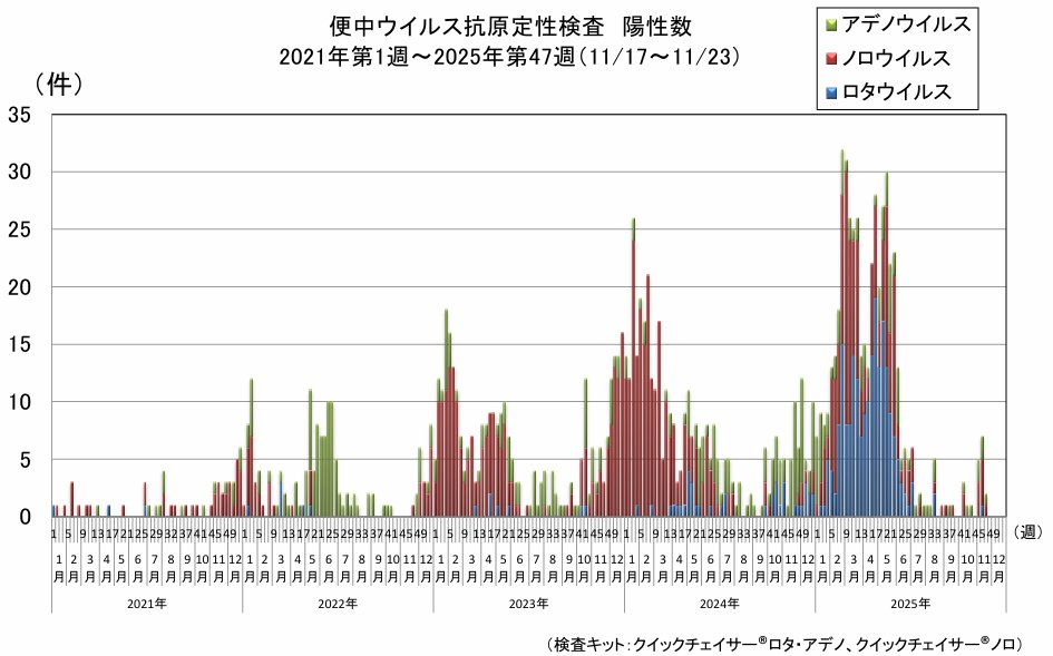 ロタウイルスは12検体を検査し、0件(0.0%)の陽性でした。