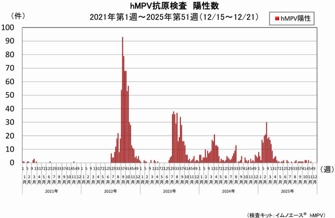 ヒトメタニューモウイルスは27検体を検査し、0件(0.0%)の陽性でした。