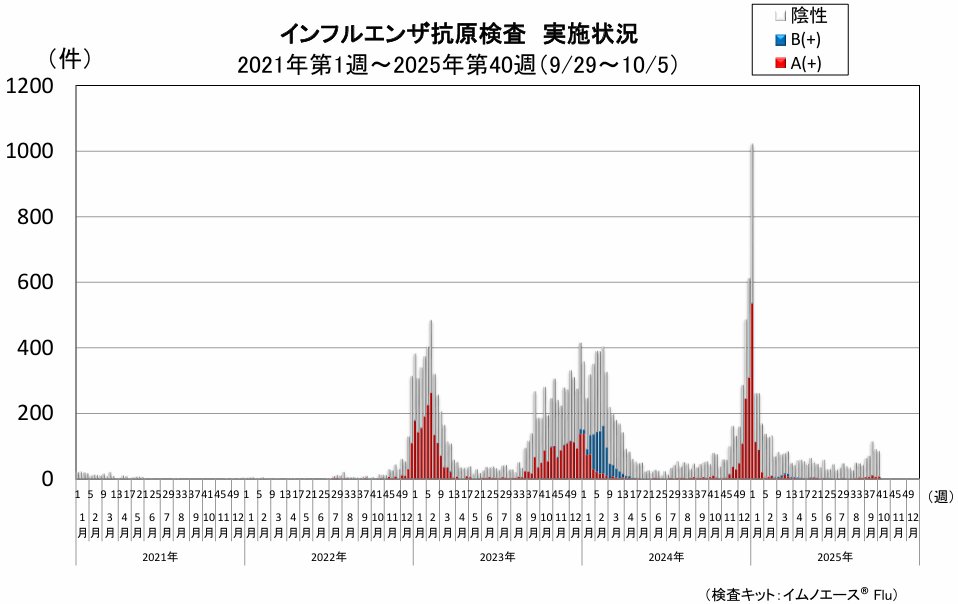 インフルエンザは85検体を検査し、A抗原が7件(8.2%)、B抗原が0件(0.0%)の陽性でした。