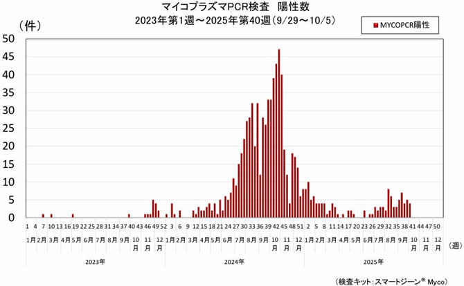 マイコプラズマPCR検査は9検体を検査し、4件(44.4%)の陽性でした。