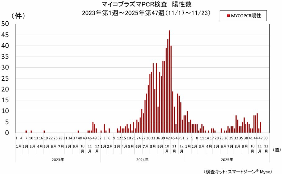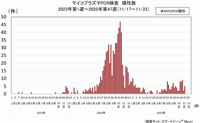 マイコプラズマPCR検査は9検体を検査し、5件(55.6%)の陽性でした。