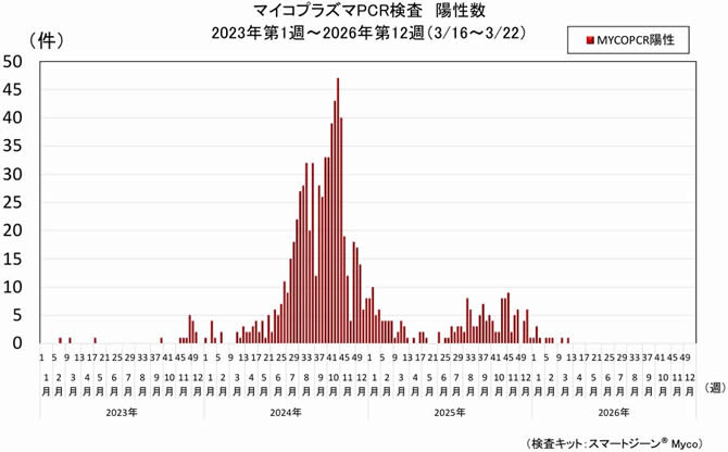 マイコプラズマPCR検査は3検体を検査し、1件(33.3%)の陽性でした。