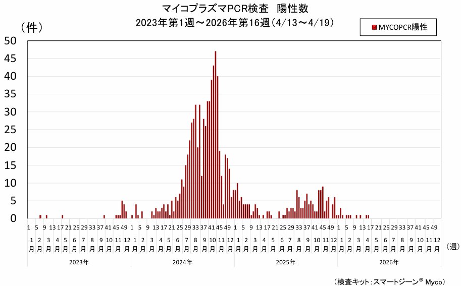 マイコプラズマPCR検査は4検体を検査し、1件(25.0%)の陽性でした。