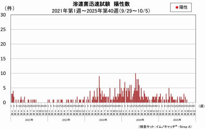 過去10年間の平均は同時期1.7です。昨年同時期の陽性は1件でした。