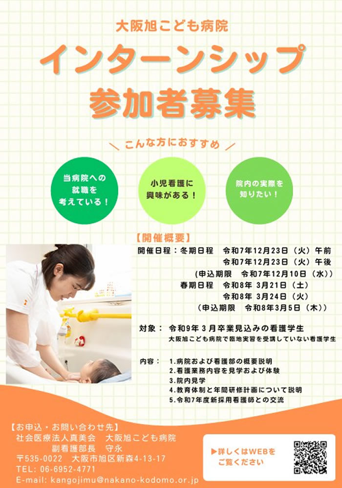 院内の雰囲気や看護師の実際の仕事を直に感じることができる大阪旭こども病院の現場を是非、体験してください。
